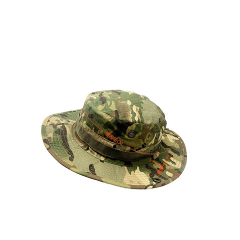Gorra de campamento con su logotipo Diseño Parche de cuero Logotipo o logotipo de bordado directo Tela de camuflaje Impermeable